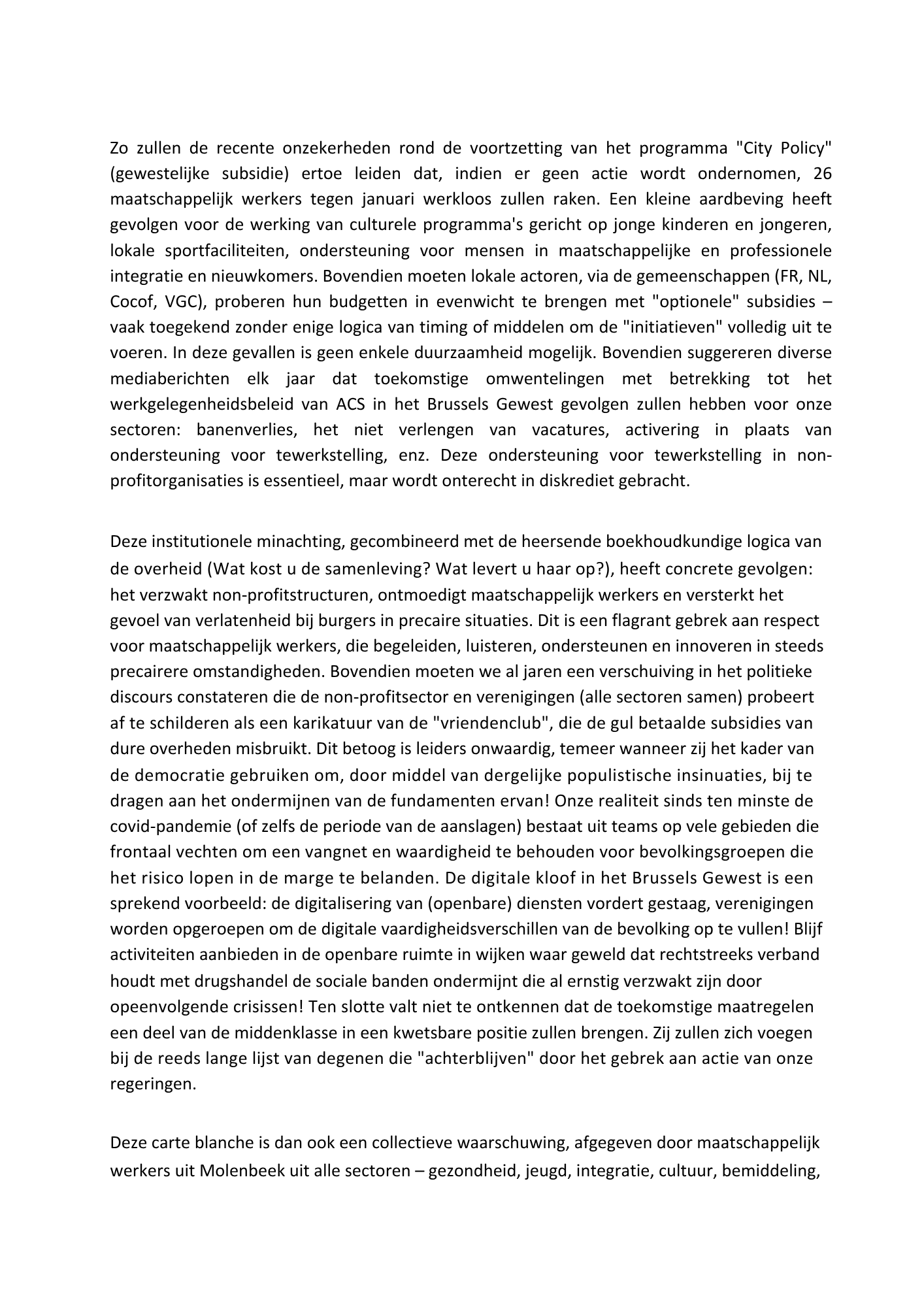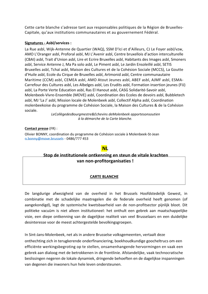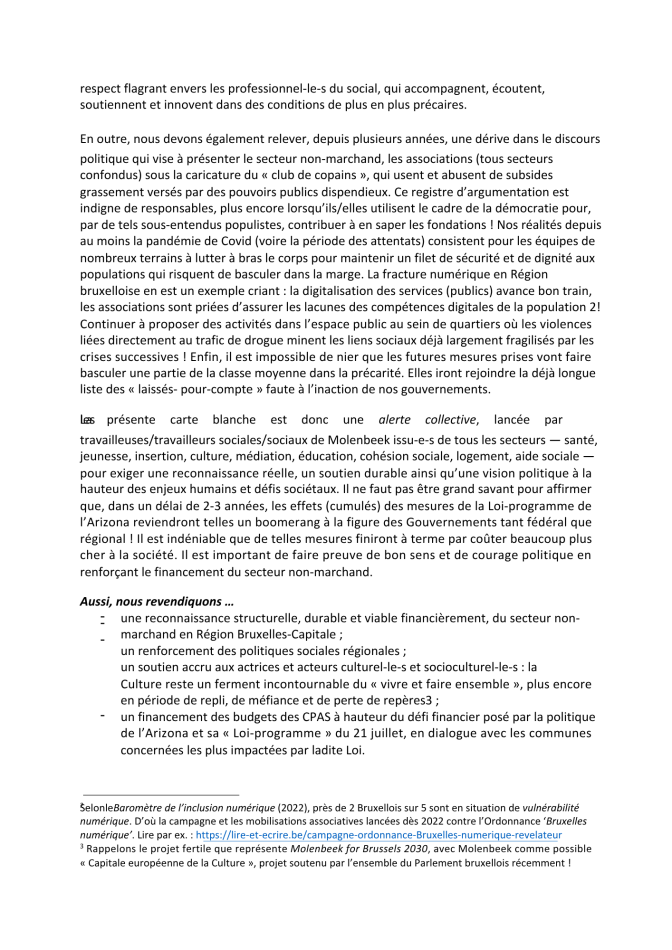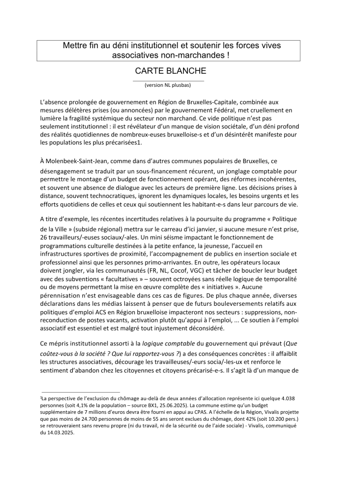 Carte blanche:Mettre fin au déni institutionnel et soutenir les forces vives associatives non-marchandes !